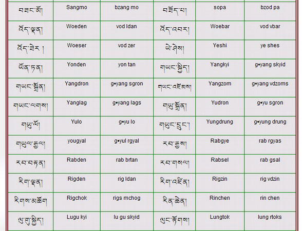 བོད་མིང་དབྱིན་ཡིག་དང་ལཱ་ཏིང་ཡི་གེ་རུ་ཕབ་ཚུལ།