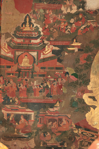 སྤྱིར་སྡེ་དགེ་པར་ཁང་ཆོས་མཛོད་ཆེན་མོའི་གཙུག་ལག་ཁང་ན་བཞུགས་པའི་སྐུ་རྟེན་གཙོ་བོ་ནི་ཁང་བརྩེགས་གཉིས་པའི་གཡོན་ཕྱོགས་གྲུ་ཟུར་གྱི་སྒྲོལ་མའི་ལྡེབས་སྐུ་དེ་བཞེངས་སྔ་ཤོས་ཡིན་པར་ལོ་རྒྱུས་སྨྲ་བ་ཀུན་གྱིས་ཞལ་གཅིག་མཐུན་བྱུང་བ་ལྟར། རྒྱུན་དུ་མཆོད་འབུལ་དང་མངའ་གསོལ་བསྟི་སྟངས་རིམས་གྲོལ་སོགས་སྐྱབས་སུ་བསྙེན་ནས་ཡི་དམ་དུ་བསྟེན་བཞིན་ལགས་པས་ལུང་བསྟན་པ་དང་གསུང་འབྱོན་པ་སོགས་ཕྲིན་ལས་དང་སྡོང་གྲོགས་མྱུར་བའི་དོན་མཐུན་གྱི་ལོ་རྒྱུས་གསལ་བར་མངོན་ཏེ། སྔོན་ཆད་པར་ཁང་ནང་སྐྱེས་པ་མ་གཏོགས་བུད་མེད་འགྲོ་མི་ཆོག་པའི་མོ་ཁྲིམས་ཀྱི་སྲོལ་ཡོད་པར་གྲགས་ལ་སྐབས་དེར་ཉིན་ཞིག་ལ་ཆོས་མཛོད་ཁང་དེའི་ལས་གཉེར་བ་ཞིག་ཕྱི་རུ་སྐོར་བར་ཕྱིན་པ་ན་པར་ཁང་གི་ནང་ནས་བུད་མེད་གཅིག་གིས་སྐད་སྒྲ་སྒྲོག་པར་ཐོས་འཕྲལ་ལས་གཉེར་བ་དེ་མ་ཐག་ཏུ་ནང་དུ་སོང་ནས་སྒྲོལ་མའི་ལྡེབས་སྐུ་དེའི་རྩར་སླེབས་ཚེ་རྗེ་བཙུན་མས་དེ་མ་ཐག་ཏུ་འདུ་ཁང་ལ་མེ་ཤོར་སོང་ཞེས་བློ་བུར་དུ་གསུང་འབྱོན་བྱུང་བ་གྲགས་ལ་ལས་གཉེར་བ་འཕྲལ་དུ་འདུ་ཁང་གི་ཕྱོགས་ཀུན་ཏུ་རྒྱུག་ནས་བལྟས་ཚེ་འདུ་ཁང་ནང་མཆོད་གཤམ་བྱས་པའི་མར་མེས་ཀ་གདུང་སྟེང་ནས་དཔྱང་བའི་ཁ་བཏགས་ལ་མེ་མཆེད་ནས་འབར་བཞིན་ཡོད་པར་མཐོང་ནས་དེ་མ་ཐག་མེ་བསད་ནས་ཕྱིར་སྒྲོལ་མའི་མདུན་ཕྱག་དང་རིམས་གྲོལ་སོགས་བྱས་ཏེ་དེ་ནས་བཟུང་ཉིན་བཞིན་མཆོད་འབུལ་མ་བཅག་པར་བྱེད་བཞིན་ད་ལྟའི་བར་ཚད་ལྡན་གྱི་གསོལ་མཆོད་རྒྱུན་འཇགས་གནང་བཞིན་ལགས། ཆོས་མཛོད་ཆེན་མོའི་ཁང་བརྩེགས་དང་པོའི་སྒོ་ཆེན་གྱི་མདུན་ཐད་གཡས་ཕྱོགས་སུ་འདུ་ཁང་ཆེན་མོའི་ཕྱོགས་བཞིའི་ལྡེབས་ངོས་སུ་བཞུགས་པའི་ལོ་རྒྱུས་དང་སྒྱུ་རྩལ་སོགས་ཀྱིས་ཕྱུག་པའི་སྤྱི་ལོའི་དུས་རབས་བཅོ་བརྒྱད་པའི་གནའ་བོའི་ལྡེབས་རིས་རྣམས་དུས་འགྱུར་གྱི་འོག་ཉམས་རྒུད་དུ་མ་སོང་བར་གསེར་འོད་ཀྱི་གཟི་མདངས་དང་བཅས་ཚོན་རིས་རྣམས་ཞལ་གསལ་ལ་ལྷ་བཀོད་ཀྱི་ཉམས་ཕུན་སུམ་ཚོགས་པའི་འདུ་ཁང་ཆེན་མོའི་རྒྱ་མཐོང་གི་ལྡེབས་ངོས་སུ་བླ་མ་དང་ཡི་དམ་གྱི་སྐོར་དང་། འོག་གི་འདུ་ཁང་གི་ལྡེབས་ངོས་ལྡེབས་རིས་རྣམས་རྒྱལ་བ་རིགས་ལྔ་དང་ཉེ་བའི་སྲས་ཆེན་བརྒྱད་ཀྱི་གཙོ་བོར་བྱས་པའི་འཁོར་ཉན་རང་བྱང་སེམས་ཆོས་བསྲུང་ནོར་ལྷའི་ཚོགས་བསམ་གྱིས་མི་ཁྱབ་པས་བསྐོར་བ་དང་བཅས་གཙོ་སྐུ་རྣམས་གསེར་སྦྱངས་གཙོ་མ་བྱི་དོར་བྱས་པ་ལྟར་གཟི་འོད་ཀྱི་མདངས་ལྷམ་མེར་འཕྲོ་ཞིང་། ཁྲི་རྒྱན་དང་པདྨ་རྣམས་ཁ་དོག་སྣ་ཚོགས་རྒྱས་པའི་ཚོན་མདངས་གྱིས་སྦྱོར་བསྡེབས་སྨུག་ལ་སྣུམ་བག་དང་བཅས་རྒྱང་རྔམ་ཆེ་བ། གནམ་ས་གོ་འབྱེད་པའི་ཡུལ་སྣང་གི་བཀོད་པས་དག་ཉམས་བདེན་པ་དབྱེར་མེད་ཀྱིས་ཡིད་ཀྱི་འགྱུར་བ་དབང་མེད་དུ་དྲངས་ཤི