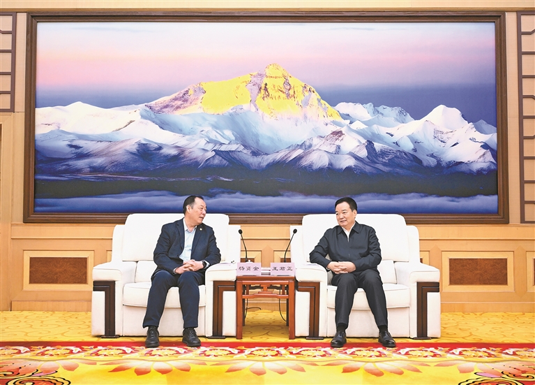 ཉེ་ཆར། བོད་རང་སྐྱོང་ལྗོངས་ཏང་ཨུད་ཀྱི་ཧྲུའུ་ཅི་ཝང་ཅུན་ཀྲེང་གིས་ལྷ་སར་ཐེན་ཅིན་སློབ་ཆེན་ཏང་ཨུད་ཀྱི་ཧྲུའུ་ཅི་དབྱང་ཤན་ཅིན་བཅས་པ་དང་བཞུགས་མོལ་གནང་ཞིང་། འདི་ནི་བཞུགས་མོལ་གནང་བཞིན་པ།