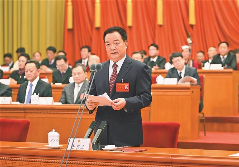 ཝང་ཅུན་ཀྲེང་གིས་ནན་བཤད་གནང་དོན། འགོ་ཡག་པོ་འཛུཌ་པ་ནི་སྤྱི་ཡོངས་དང་འབྲེལ་བ་ཡོད་པ་དང་། གོམ་སྟབས་བརྟན་པོ་སྤོ་བ་དེས་རྗེས་མཐུད་ཀྱི་ལས་དོན་ཐག་གཅོད་བྱེད། ལྗོངས་ཡོངས་ཀྱི་རིམ་ཁག་མི་དམངས་འཐུས་ཚོགས་དང་མི་དམངས་འཐུས་ཚོགས་ཀྱི་འཐུས་མིས་ཞི་ཅིན་ཕིང་གི་དུས་རབས་གསར་པའི་ཀྲུང་གོའི་ཁྱད་ཆོས་ཀྱི་སྤྱི་ཚོགས་རིང་ལུགས་ཀྱི་དགོངས་པ་མཛུབ་ཁྲིད་དུ་བྱ་རྒྱུ་མཐའ་འཁྱོངས་དང་། མི་དམངས་འཐུས་མི་ཚོགས་ཆེན་ལམ་ལུགས་མཐའ་འཁྱོངས་དང་འཐུས་སྒོ་ཚང་དུ་གཏོང་རྒྱུའི་སྐོར་གྱི་སྤྱི་ཁྱབ་ཧྲུའུ་ཅི་ཞི་ཅིན་ཕིང་གི་དགོངས་པ་གལ་ཆེན་ལག་བསྟར་དོན་འཁྱོལ་མཐའ་གཅིག་ཏུ་བྱེད་པ། ཏང་གི་འགོ་ཁྲིད་དང་། མི་དམངས་རང་ཁྱིམ་རང་བདག ཁྲིམས་ལྟར་རྒྱལ་སྐྱོང་བཅས་གཅིག་གྱུར་དམ་ཟབ་བྱ་རྒྱུ་མཐའ་འཁྱོངས་བྱེད་པ། རྩ་ཁྲིམས་དང་བཅའ་ཁྲིམས་ཀྱིས་དཀྲིས་པའི་ལས་འགན་ཁག་ལག་བསྟར་ནན་ཏན་བྱེད་པ། དུས་རབས་གསར་པའི་མི་དམངས་འཐུས་ཚོགས་ཀྱི་ལས་དོན་སྤུས་ཚད་མཐོ་བའི་འཕེལ་རྒྱས་ལ་སྐུལ་འདེད་གཏོང་བ་བཅས་བྱས་ཏེ་ལྗོངས་ཡོངས་ཀྱི་ལས་ཀའི་སྤྱི་ཡོངས་ལ་སྟོབས་ཤུགས་དེ་བས་ཆེ་བ་ལེགས་སྐྱེས་འབུལ་རྒྱུའི་འབད་བརྩོན་བྱེད་དགོས། ཆབ་སྲིད་ཀྱི་ཚུགས་གནས་མཐོ་རུ་བཏང་ནས་ཏང་གི་འགོ་ཁྲིད་དེ་ཉིད་མི་དམངས་འཐུས་ཚོགས་ཀྱི་ལས་ཀའི་བརྒྱུད་རིམ་ཧྲིལ་པོ་དང་ཕྱོགས་ཁག་ཏུ་ཁྱབ་པ་བྱ་རྒྱུ་མཐའ་འཁྱོངས་ཀྱིས་ཏང་གི་ལམ་ཕྱོགས་དང་། མཛད་ཕྱོགས། སྲིད་ཇུས། ཐབས་ཇུས་བཀོད་སྒྲིག་བཅས་ཕྱོགས་ཡོངས་ནས་ལག་བསྟར་ནུས་ལྡན་ཡོང་བའི་འགན་ལེན་བྱེད་དགོས། མི་དམངས་གོང་དུ་བཀུར་རྒྱུ་མཐའ་འཁྱོངས་ཀྱིས་བརྒྱུད་རིམ་ཧྲིལ་པོའི་མི་དམངས་དམངས་གཙོ་འཕེལ་རྒྱས་དང་ལག་ལེན་ཧུར་ཐག་བསྟར་ཏེ་ཁྲིམས་འཛུགས་རེ་རེ་དང་ཆོད་དོན་དང་གྲོས་ཆོད་རེ་རེ་ནས་མི་དམངས་ཀྱི་ཁེ་ཕན་མཚོན་པ་དང་དེར་སྲུང་སྐྱོང་བྱེད་པ་དང་། མི་དམངས་ཀྱི་འདོད་བློ་མཚོན་པ། མི་དམངས་ཀྱི་བདེ་རྩ་ཆེ་རུ་གཏོང་བ་བཅས་གང་ཐུབ་བྱེད་དགོས། སྤུས་ཚད་མཐོ་བའི་ཁྲིམས་འཛུགས་ལ་སྐུལ་འདེད་གཏོང་བ་དང་། “དོན་ཆེན་བཞི”དོན་འཁྱོལ་ལ་དམ་པོར་དམིགས་པ། “འཇུག་སྒོ་ཆུང་ངུ”ནས་འགོ་བཙུགས་ཏེ་ཁྲིམས་འཛུགས་ལ་ཤུགས་སྣོན་རྒྱག་པ། ཚན་རིག་དང་མཐུན་པའི་ཁྲིམས་འཛུགས་དང་། དམངས་གཙོའི་ཁྲིམས་འཛུགས། ཁྲིམས་ལྟར་ཁྲིམས་འཛུགས། ཁྲིམས་སྐྱོང་དྲིལ་བསྒྲགས་སློབ་གསོ་ལག་བསྟར་གཏིང་ཟབ་བཅས་བྱས་ཏེ་ཕྱོགས་ཡོངས་ནས་ཁྲིམས་ལྟར་བོད་སྐྱོང་ལ་དེ་བས་འཐུས་སྒོ་ཚང་བའི་ཁྲིམས་སྐྱོང་གི་འགན་སྲུང་བྱེད་དགོས། མི་དམངས་འཐུས་ཚོགས་ཀྱི་ལྟ་སྐུལ་གྱི་སྤུས་ཕན་ཆེ་རུ་གཏོང་བ་དང“ལོ་ལྔ་ཚན་བཅོ་ལྔ་པའི”འཆར་འགོད་ལག་བསྟར་ལ་དམིགས་ནས། ལྟ་སྐུལ་གྱི་དམིགས་སའི་རང་བཞིན་དང་། དངོས་ཕན་རང་བཞིན། ཚན་