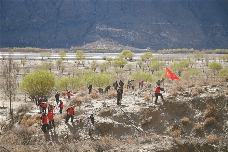 ཡར་ཀླུང་གཙང་པོའི་འགྲམ་དུ་དཔྱིད་རླུང་ལྡང་ནས་ས་གཞི་ཀུན་ཏུ་སྔོ་མདངས་རྒྱས་འགོ་ཚུགས། ཉེ་ཆར། བོད་ལྗོངས་ལྷོ་ཁ་གྲོང་ཁྱེར་ཟངས་རི་རྫོང་གི་2026ལོའི་དཔྱིད་དུས་ཀྱི་དམངས་ཡོངས་ཀྱི་འོས་འགན་ཤིང་འཛུགས་བྱེད་སྒོ་རྫོང་དེའི་གཙང་འགྲམ་ལམ་ཆེན་གྱི་ཡར་ཀླུང་གཙང་འགྲམ་དུ་འགོ་ཚུགས་པ་རེད། རྫོང་ཡོངས་ཀྱི་ཏང་ཡོན་ལས་བྱེད་པ་དང་། མང་ཚོགས། དང་བླངས་པ་བཅས་མི་740ལྷག་ཙམ་གྱིས་ཐང་ཤིང་དང་སྦྱར་པ་སོགས་ཀྱི་སྡོང་ཕྲུག་སྣ་ཚོགས་རྐང་ཁྲི་1.1བཏབ་སྟེ་བྱ་སྤྱོད་དངོས་ལ་བརྟེན་ནས་ས་མཐོར་ལྗོན་ཤིང་བཙུགས་ཡོད།