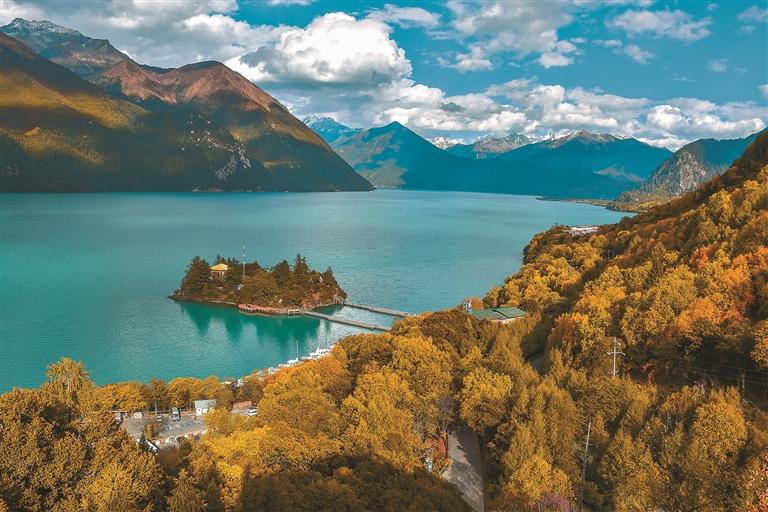 ཀོང་པོའི་ཡུལ་དུ་དགུང་སྔོན་སྤྲིན་དཀར་དང་། གསེར་མདོག་གི་ནགས་ཚལ། ཆུ་མོ་དྭངས་བ་བཅས་ཡིད་དབང་འཕྲོག་པའི་མཛེས་ལྗོངས་ཀྱིས་རྒྱལ་ཡོངས་ས་གནས་ཁག་གི་ཡུལ་སྐོར་བ་བོད་དུ་སྟོན་ཉམས་མྱོང་རོལ་བྱེད་པར་ཡོང་བའི་ཡིད་དབང་བཀུག་ཡོད། འདི་ནི་རྒྱལ་ཁབ་ཀྱི་A5རིམ་པའི་མཛེས་ལྗོངས་ཁུལ་ཀོང་པོ་རྒྱ་མདའ་རྫོང་བྲག་གསུམ་མཚོའི་མཛེས་ལྗོངས་ཁུལ་ཡིན་པ།