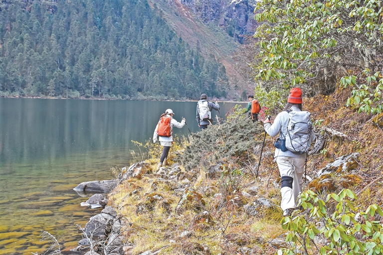 ཟ་ཡུལ་སྒང་གཡུ་མཚོར་རྐང་ཐང་དུ་བསྐྱོད་དེ་སྤྲོ་གསེང་ལ་རོལ་བ།