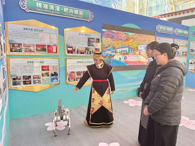 བྱེད་སྒོ་སྤེལ་ཡུལ་དུ་བསྒྲིགས་པའི“བརྒྱད་ལྔ”ཁྲིམས་ལུགས་ཁྱབ་གདལ་གྲུབ་འབྲས་འགྲེམས་ཁུལ་གྱིས་པར་རིས་འགྲེམས་པང་དང་། དངོས་པོའི་འགྲེམས་སྟེགས། འགུལ་རིས་བརྙན་ཤེལ། དེ་བཞིན་གྲངས་འཛིན་འཕྲུལ་མི་སོགས་རྣམ་པ་སྣ་ཚོགས་ལ་བརྟེན་ནས་རང་ལྗོངས་སུ“ཆེད་དོན་བྱ་སྤྱོད་ཆེ་མོ་དྲུག”ལས་ཐོབ་པའི་དངོས་དངོས་རྗེན་རྗེན་གྱི་གྲུབ་འབྲས་བཤམས་པ་དང་། བོད་ལྗོངས་ཚོམས་ཆེན་གྱི་བརྙན་ཤེལ་ཐོག་རྒྱ་བོད་སྐད་ཡིག་གཉིས་ཀྱི་ལམ་ནས་ཁྲིམས་སྐྱོང་སྐོར་གྱི་ཀོ་ཕིག་དང་ཁྲིམས་ལུགས་དྲིལ་བསྒྲགས་ལ་ཐོབ་པའི་གྲུབ་འབྲས་རེས་སྐོར་གྱིས་བསྟན་པས་དེར་འདུས་པའི་མི་རྣམས་ཀྱིས་རྩ་ཁྲིམས་ལ་བརྩི་སྲུང་དང་། རྩ་ཁྲིམས་སློབ་སྦྱོང་། རྩ་ཁྲིམས་སྲུང་སྐྱོང་། རྩ་ཁྲིམས་བེད་སྤྱོད་བཅས་བྱེད་དགོས་པའི་དྲན་སྐུལ་ཡང་ཡང་བྱས་པ་རེད། ད་དུང་ས་ཡུལ་དངོས་སུ་བཙུགས་པའི་བཅའ་ཁྲིམས་བློ་འདྲི་སྟེགས་བུས་མང་ཚོགས་ལ་ཁྱིམ་ཚང་གཏུམ་སྤྱོད་དང་། ངལ་རྩོལ་འགན་སྲུང་། འཛད་སྤྱོད་ཁེ་དབང་སོགས་ཁོངས་ཀྱི་ཞབས་ཞུ་དེ་མ་ཉིད་དུ་སྒྲུབ་བཞིན་ཡོད་པ་རེད།