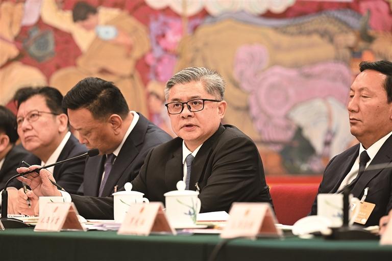 ཚེས་6ཉིན་གྱི་ཕྱི་དྲོར། རྒྱལ་ཡོངས་མི་དམངས་འཐུས་ཚོགས་སྐབས་བཅུ་བཞི་པའི་ཚོགས་འདུ་ཐེངས་བཞི་པའི་བོད་ཀྱི་འཐུས་མི་ཚོགས་པས་ཚོགས་པ་དང་ཚོགས་ཆུང་སྒོ་དབྱེའི་བྱེད་སྒོ་སྤེལ་བར་རྒྱལ་ཁབ་ཕྱི་ནང་གི་སྨྱན་སྦྱོར་38ཀྱི་གསར་འགོད་པ་66ཞུགས་ཡོད་པ་རེད། འདི་ནི་རྒྱལ་ཡོངས་མི་དམངས་འཐུས་ཚོགས་ཀྱི་འཐུས་མི་ཝང་ཆང་གིས་གསར་འགོད་པའི་དྲི་བར་ལན་འདེབས་བཞིན་པ།