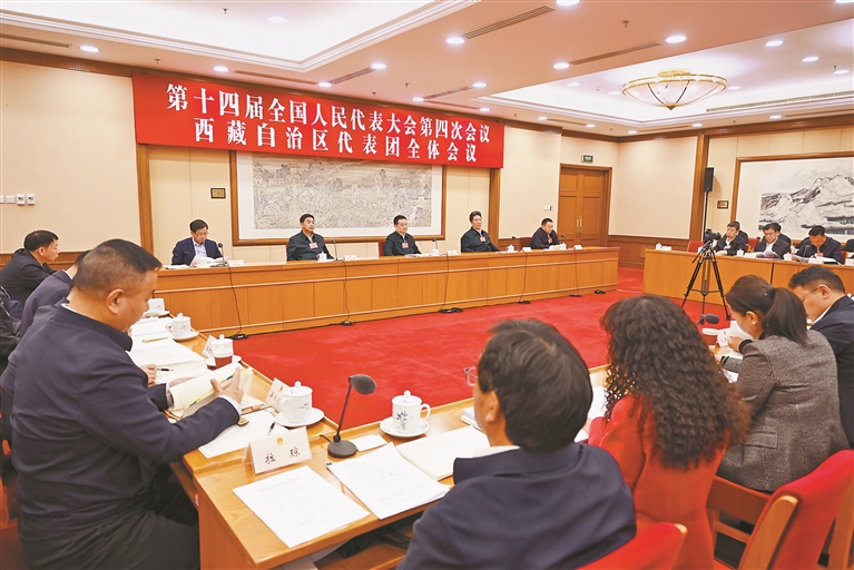 ཟླ་3ཚེས་7ཉིན། བོད་ལྗོངས་ཀྱི་འཐུས་མི་ཚོགས་པས་ཚང་འཛོམས་གྲོས་ཚོགས་འཚོགས་ནས་སྤྱི་ཁྱབ་ཧྲུའུ་ཅི་ཞི་ཅིན་ཕིང་གིས་རྒྱལ་ཡོངས་སྲིད་གྲོས་སྐབས་བཅུ་བཞི་པའི་ཚོགས་འདུ་ཐེངས་བཞི་པར་ཞུགས་མཁན་ཞིང་བཟོ་དམངས་གཙོ་ཏང་དང་། དགུ་གསུམ་རིག་ཚོགས། སྨན་བཅོས་འཕྲོད་བསྟེན་རིགས་ཁོངས། སྤྱི་ཚོགས་ཕན་བདེ་དང་སྤྱི་ཚོགས་འགན་སྲུང་རིགས་ཁོངས་བཅས་ཀྱི་ཨུ་ཡོན་ལ་གཟིགས་པ་དང་འབྲེལ་མཉམ་འབྲེལ་ཚོགས་ཆུང་གི་ཚོགས་འདུར་ཞུགས་སྐབས་གནང་བའི་གསུང་བཤད་གལ་ཆེན་གྱི་དགོངས་དོན་བརྒྱུད་བསྒྲགས་སློབ་སྦྱོང་དང་། སྲིད་གཞུང་གི་ལས་དོན་སྙན་སྒྲོན་ལ་མུ་མཐུད་གྲོས་ཞིབ། འཆར་གཞིའི་སྙན་སྒྲོན་དང་འཆར་ཟིན་དང་སྔོན་རྩིས་སྙན་སྒྲོན་དང་འཆར་ཟིན་ལ་ཞིབ་བཤེར་བཅས་གནང་བ་རེད།