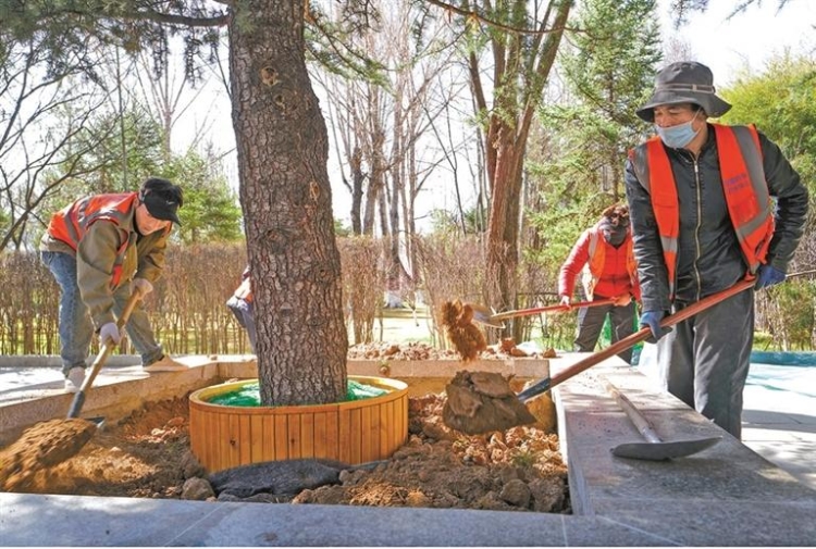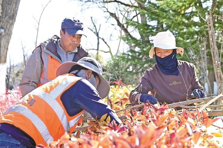 བསྟུད་མར་ཉིན་ཤས་ཀྱི་རིང་ལ། ལྷ་ས་གྲོང་ཁྱེར་གྱི་གྲོང་ཁུལ་ཁག་གི་སྐྱེད་ཚལ་སྔོ་འགྱུར་བྱ་ཡུལ་དུ་བྲེལ་འཚུབ་ཀྱི་རྣམ་པས་ཁེངས་ཤིང་། ལས་བཟོ་ཚོས་དཔྱིད་དུས་ཀྱི་ཤིང་འཛུགས་དུས་ཚོད་ཡག་ཤོས་དམ་འཛིན་བྱས་ཏེ་ལྕང་སོན་རྩ་སྤོས་རྒྱག་པ་དང་། སྡོང་ཕྲུག་ལ་ཡལ་བཞུར་རྒྱག་པ། སྤང་ལ་བདག་སྐྱོང་བྱེད་པ་སོགས་བྱས་ནས་ལྗོན་ཤིང་སྐྱེ་འཚར་ཡག་པོ་ཡོང་བའི་འགན་ལེན་བྱས་པ་མ་ཟད། ད་དུང་གྲོང་ཁུལ་སྔོ་འགྱུར་གྱི་སྤུས་ཚད་ཀྱང་ལེགས་སུ་བཏང་ནས་མང་ཚོགས་ཚོར་དཔྱིད་དུས་གྲོང་ཁྱེར་གྱི་སྐྱེ་ཁམས་ཀྱི་མཛེས་པར་མྱོང་རོལ་ཐུབ་པར་བྱས།