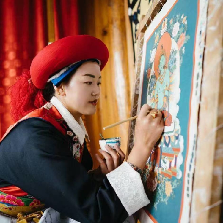 ཆོས་མཚོས་ཐང་ག་ནི་མཆོད་རྫས་གལ་ཆེན་ཞིག་ཡིན་པར་མ་ཟད། བོད་ཀྱི་རིག་གནས་དང་མཛེས་དཔྱོད་རིག་པའི་སྒྱུ་རྩལ་གྱི་གཅེས་ནོར་ཞིག་ཀྱང་ཡིན། གནའ་བོའི་སྒྱུ་རྩལ་བཟང་པོ་འདི་མི་དེ་བས་མང་པོས་རྒྱུས་ལོན་བྱ་ཆེད། མོས་རང་ཉིད་ཀྱི་ཐང་གའི་ཉམས་ལེན་ཁང་སྟེ་ཐང་ག་སྒྱུ་རྩལ་ཁང་འདི་གསར་དུ་བཙུགས་ནས་སྒོ་ཕྱེ་ཞིང་། མོས་སྲོལ་རྒྱུན་གྱི་ལག་རྩལ་དེ་གསོན་ཉམས་ལྡན་ཞིང་སྤྲོ་སྣང་ལྡན་པའི་སློབ་ཚན་ཞིག་ཏུ་བསྒྱུར། བྱེད་སྟངས་འདི་རིགས་ཀྱིས་ཐང་གའི་ཤེས་བྱ་ཁྱབ་གདལ་བཏང་བར་མ་ཟད། མི་དེ་བས་མང་པོར་སྒྱུ་རྩལ་འདིར་དགའ་པོ་བྱེད་མཁན་དང་ཁྱབ་སྤེལ་གཏོང་མཁན་ཞིག་ཏུའང་གྱུར་ཡོད། རང་མི་རིགས་ཀྱི་རིག་གནས་ཀྱང་རང་གི་ནུས་ཚོད་ཀྱིས་དྲིལ་བསྒྲགས་བྱས་པ་ཞིག་ཀྱང་རེད། ཀྲེ་ཅང་ནས་ཡོང་བའི་ཡུལ་སྐོར་བ་ལྕམ་མོ་ཡུས་ཀྱིས་བློ་སེམས་གཅིག་སྒྲིམ་གྱིས་དུང་དཀར་ལ་ཚོན་གཏོང་བཞིན་འདུག། མོས་ཐེངས་དང་པོ་སེམས་ཀྱི་ཉི་ཟླར་ཡུལ་སྐོར་དུ་འོང་བ་ཡིན། དྲྭ་ངོས་སུ་སེམས་ཀྱི་ཉི་ཟླར་སླེབས་ནས་ངེས་པར་དུ་ཐང་ག་སྒྱུ་རྩལ་ཁང་དུ་སོང་ནས་ཐང་ག་འབྲི་རྒྱུ་ཉམས་ལེན་བྱེད་དགོས་ཞེས་ངོ་སྤྲོད་མང་པོ་རྒྱབ་ཡོད། དེ་རིང་ངས་ཆེད་དུ་གནས་འདི་རུ་ཡོང་བ་ཡིན། མོ་ལ་མཚོན་ན་ཐོག་དང་པོ་བོད་ཀྱི་རིག་གནས་ལ་རྒྱུས་ལོན་བྱས་པར་མ་ཟད། ཐང་ག་ཡང་ཐེངས་དང་པོ་བྲིས་པ་ཡིན། ངས་དུས་ཚོད་ཐུང་ཐུང་གི་ནང་དུ་ཐང་ག་ནི་ཇི་ལྟ་བུ་ཞིག་ཡིན་པ་དང་རིས་གཞི་ནི་ཅི་ཡིན་པ། པིར་སྨྱུག་ལ་བརྟེན་ནས་ཚོན་ཅི་ལྟར་གཏོང་བ་སོགས་ལ་རྒྱུས་ལོན་བྱས་པར་མ་ཟད། རང་ཉིད་ཀྱིས་བྲིས་པའི་ཐང་ག་ཞིག་ཀྱང་ཡོད་པས་དངོས་ནས་དོན་སྙིང་ལྡན་ལ། སེམས་ལ་ཡང་ཧ་ཅང་སྐྱིད་སོང་ཞེས་བཤད་བྱུང་།