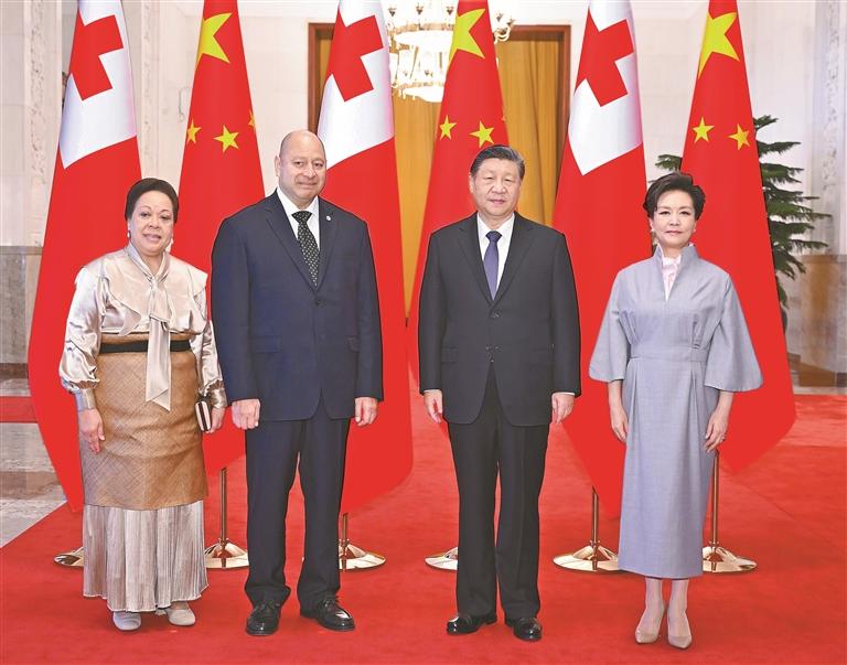 མཇལ་འཛོམས་མ་གནང་གོང་། ཞི་ཅིན་ཕིང་དང་སྐུ་ཟླ་ཕེང་ལི་ཡོན་གྱིས་མི་དམངས་ཚོགས་ཁང་ཆེ་མོའི་ཚོམས་ཆེན་བྱང་མར་ཐུའུ་ཕུའུ་ཁྲི་ཐོག་དྲུག་པ་དང་བཙུན་མོ་ནཱ་ནཱ་ཤིས་ཕ་ཝུའུ་ལ་དགའ་བསུ་ཞུ་བའི་མཛད་སྒོ་འཚོགས་པ་རེད།