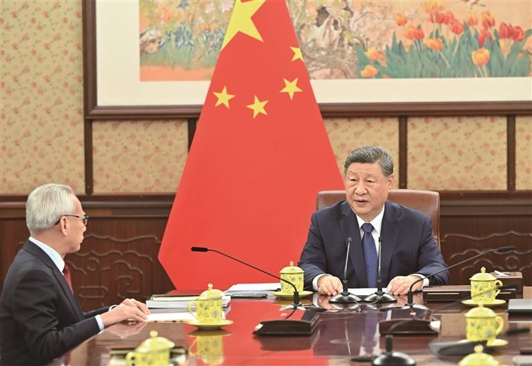 ཞི་ཅིན་ཕིང་གིས་གསུངས་དོན། ཀྲུང་གོ་གུང་ཁྲན་ཏང་སྐབས་ཉི་ཤུ་པའི་ཀྲུང་ཨུ་ཚང་འཛོམས་གྲོས་ཚོགས་ཐེངས་བཞི་པའི་ཐོག“ལོ་ལྔ་ཚན་བཅོ་ལྔ་པའི”རིང་གི་རྒྱལ་ཁབ་ཀྱི་དཔལ་འབྱོར་དང་སྤྱི་ཚོགས་འཕེལ་རྒྱས་ལ་འཐབ་ཇུས་ཀྱི་བཀོད་སྒྲིག་བྱས་ནས“རྒྱལ་ཁབ་གཅིག་ལ་ལམ་ལུགས་གཉིས”དང་། “ཨའོ་མོན་བས་ཨའོ་མོན་སྐྱོང་བ” ཚད་མཐོའི་རང་སྐྱོང་བཅས་ཀྱི་བྱེད་ཕྱོགས་བློ་བརྟན་འགྱུར་མེད་ངང་ལག་ལེན་བསྟར་ཏེ། ཨའོ་མོན་ཡུན་རིང་དར་རྒྱས་བརྟན་ལྷིང་ཡོང་བར་སྐུལ་འདེད་གཏོང་དགོས་པའི་ནན་བཤད་བྱས་ཡོད། དམིགས་བསལ་སྲིད་འཛིན་ཁུལ་སྲིད་གཞུང་གིས་རྒྱལ་ཁབ་ཀྱི“ལོ་ལྔ་ཚན་བཅོ་ལྔ་པའི”འཆར་འགོད་དང་རང་འགུལ་ངང་འབྲེལ་མཐུད་བྱས་ནས། སྲིད་འཛིན་གྱིས་གཙོ་ཁྲིད་བྱ་རྒྱུ་མཐའ་འཁྱོངས་དང་འཐུས་སྒོ་ཚང་དུ་གཏོང་བ་དང་། དཔལ་འབྱོར་འོས་འཚམ་ངང་སྣ་མང་འཕེལ་རྒྱས་ཕྱོགས་སུ་སྐུལ་འདེད་ཏན་ཏིག་གཏོང་བ། བཅོས་སྐྱོང་གི་ནུས་ཕྱོད་རྒྱུན་ཆད་མེད་པར་ཆེ་རུ་གཏོང་བ་བཅས་བྱས་ཏེ། རྒྱལ་ཁབ་འཕེལ་རྒྱས་ཀྱི་སྤྱི་ཡོངས་དང་དེ་བས་མཉམ་འདྲེས་གང་ལེགས་ཐུབ་པ་དང་ཞབས་འདེགས་ཞུ་དགོས།