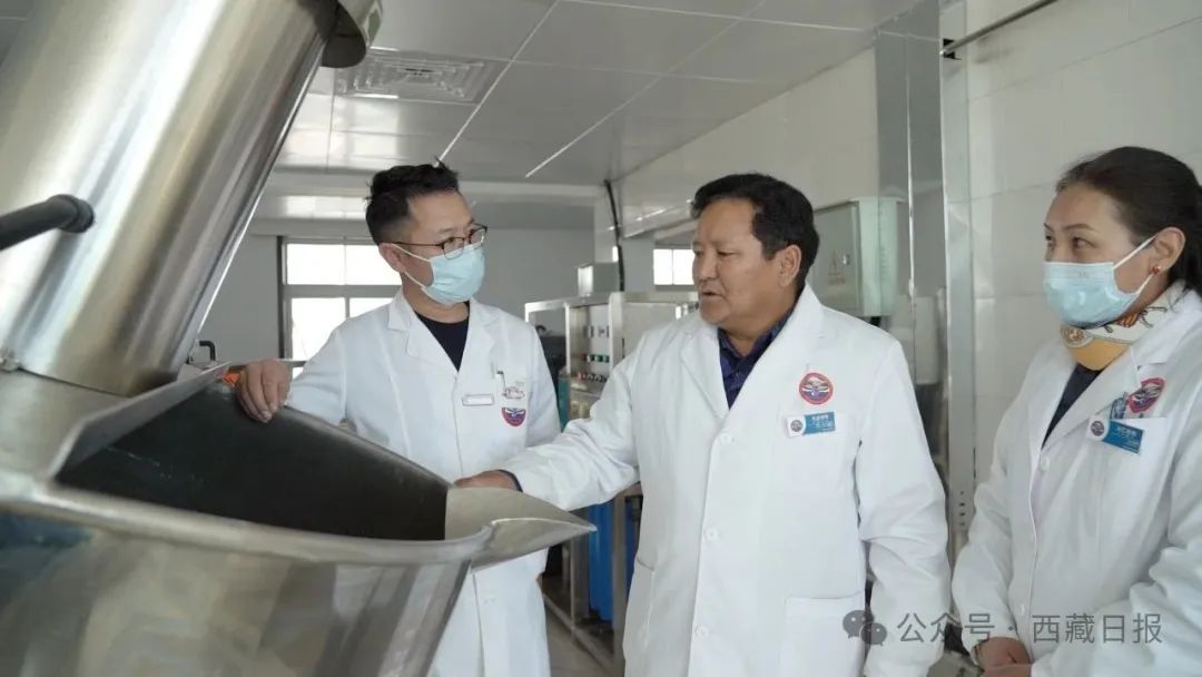 བཀྲ་ཤིས་དོན་གྲུབ་ཀྱིས་སྨན་བཟོའི་སྒྲིག་ཆས་ལ་ཞིབ་བཤེར་བྱེད་བཞིན་པ།